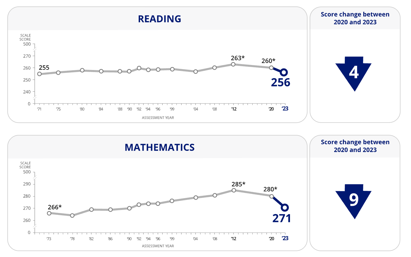 The same trend, dating from 2012, can be seen in the United States’ own NAEP scores in reading and math: